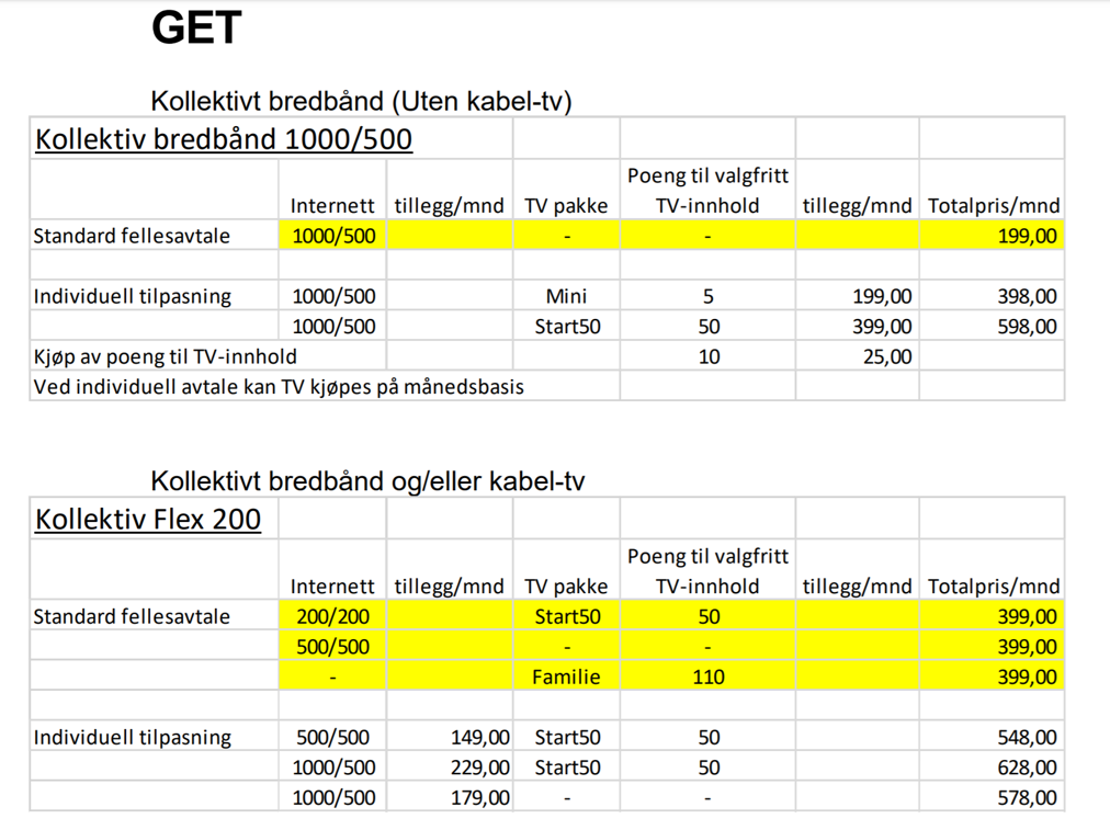TV- og internettkomitéen, som ble valgt på sameiermøte 2019, har fått tilbud fra aktuelle tilbydere, og legger frem tilbudene fra Telenor og Get for vurdering av årsmøtet.  Begge tilbyr fleksible modeller, noe som innebærer muligheter for individuelle tilpasninger i hvert enkelt hjem.