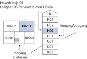 Bruksenhetsnummeret (tidligere også kalt bolignummer) er en del av den offisielle adressen din, og sier hvilken leilighet i bygningen du bor i. Bokstaven forteller om du bor i U (Underetasje), K (Kjeller), H (Hovedetasje) eller L (Loft).